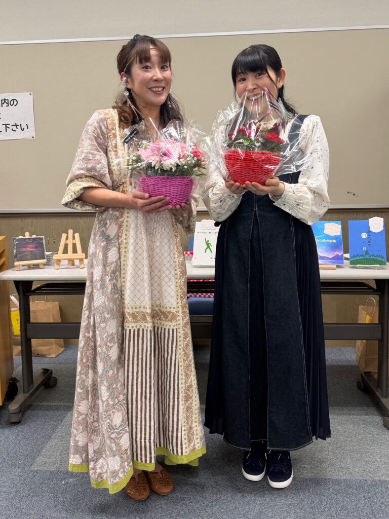 先日は旭川市中央図書館で演奏いたしました。Singer Story WrhiterのKAORUさんとご一緒したんです。シンガーソングライターじゃないですよ!ご自身で童話や絵本をつくり、そのテーマ曲も作って、演奏して歌えちゃうんです!Singer Story Writerという肩書は二人で作っちゃいました。