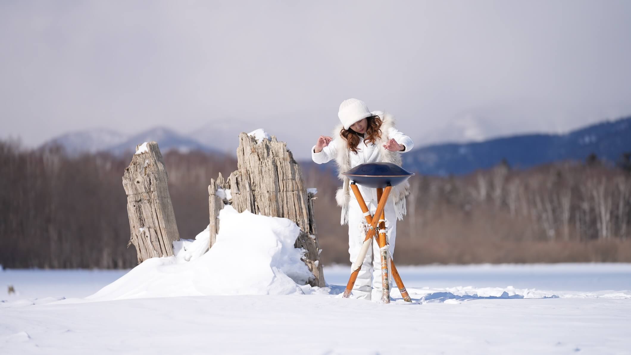 RAV Vastの柔らかな音色と素材の鋼鉄、ピアノの弦を直接弾く内部奏法によって、厳冬の神秘と緊張感を感じるアルバムタイトル曲